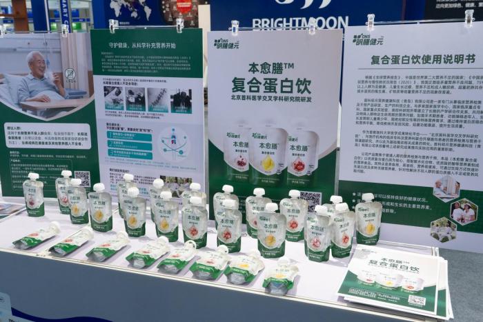全新推出的明膳健元ons系列產(chǎn)品—本愈膳?復(fù)合蛋白飲也在本次展會中首次亮相。由北京首科醫(yī)學(xué)交叉學(xué)科研究院研發(fā),聚焦于普通人群的營養(yǎng)檢測與營養(yǎng)干預(yù)。以優(yōu)質(zhì)復(fù)合蛋白質(zhì)為核心,搭配碳水化合物、優(yōu)質(zhì)脂肪酸等營養(yǎng)素,易食用、易吸收、營養(yǎng)密度高,可通過飲用方式快速補充蛋白質(zhì)及多種關(guān)鍵營養(yǎng)素。深受現(xiàn)場消費者青睞,成為現(xiàn)場的“明星產(chǎn)品”。